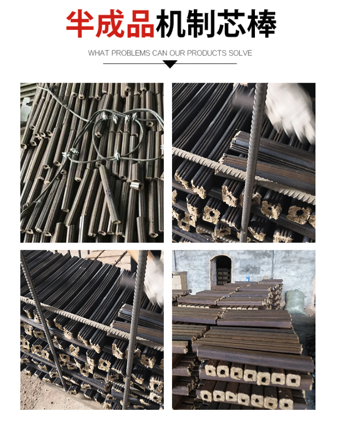 原料經(jīng)過(guò)粉碎和烘干處理,接下來(lái)就是制棒階段,將粉碎烘干后的原料通過(guò)制棒機(jī)進(jìn)行高溫高壓處理成炭棒(半成品)。制棒機(jī)可根據(jù)客戶需求,將芯棒制成50MM,60MM,70MM,80MM,90MM的空心薪棒。